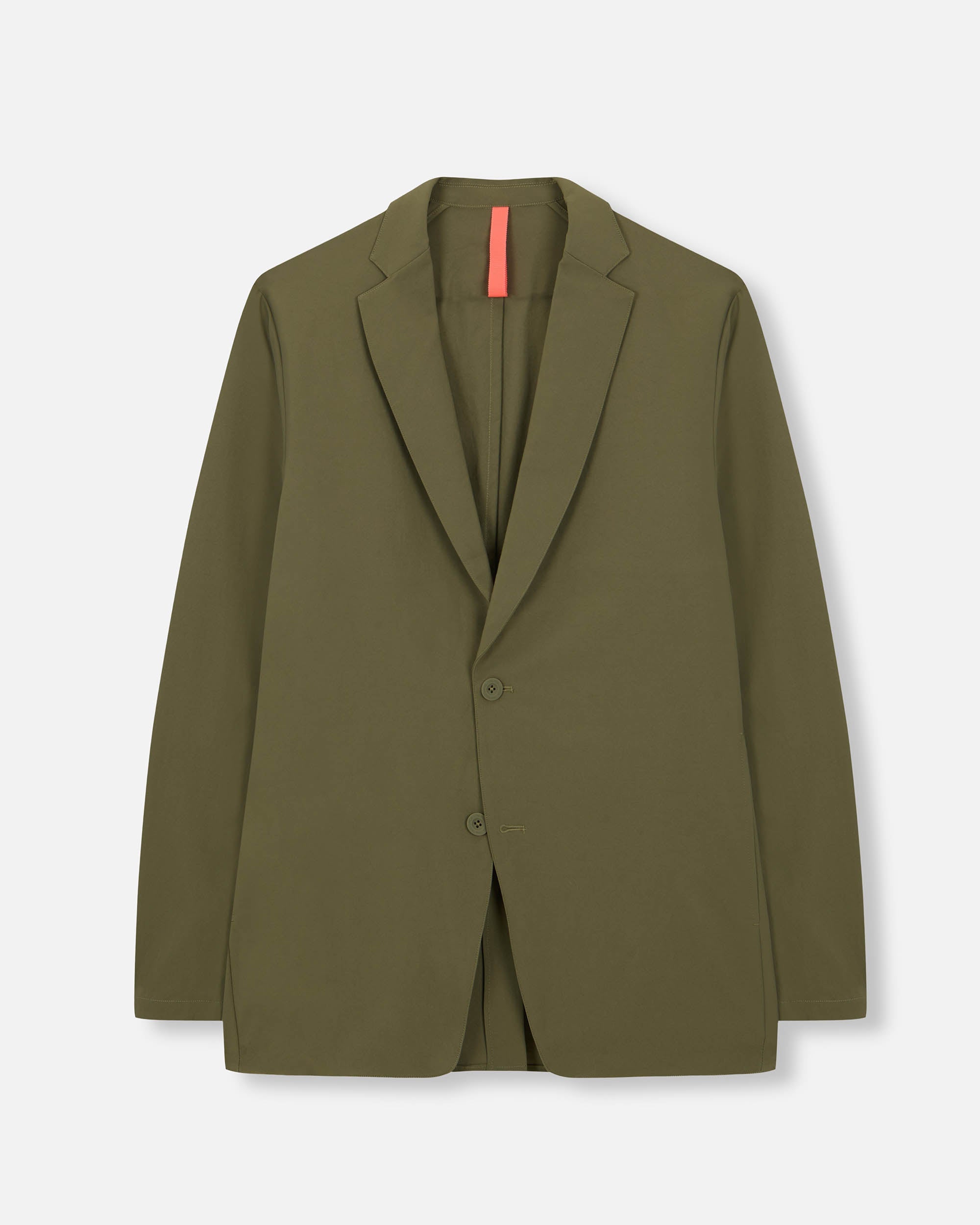 365 Blazer crafted from a Japanese technical fabric that is soft to the touch, breathable, and wrinkle-resistant. The garment features two hidden side pockets, one interior zip pocket, and another interior laser-bonded pocket.