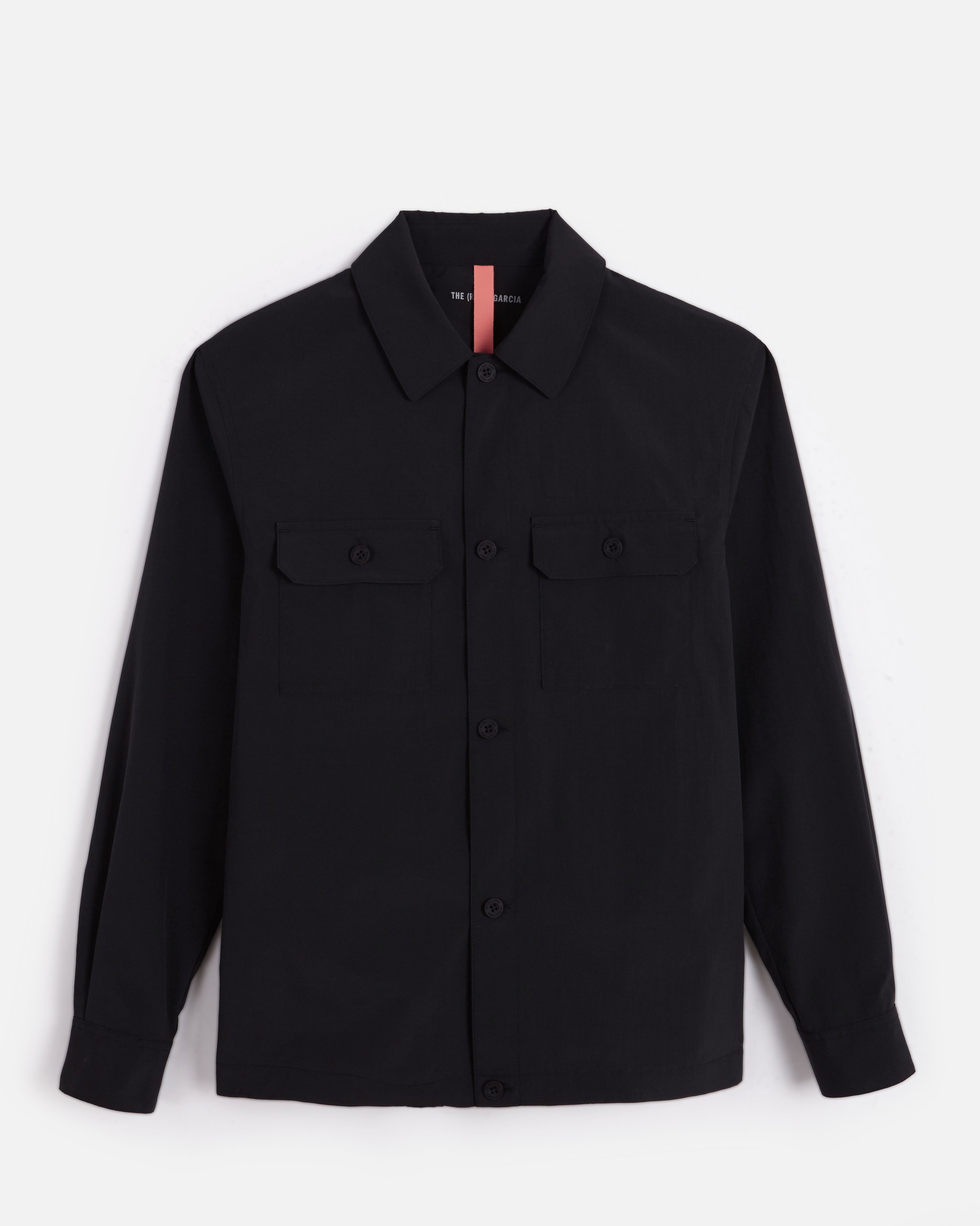 Sobrecamisa 365 confeccionada en tejido técnico japonés, de tacto suave, transpirable y antiarrugas. La prenda incluye dos bolsillos frontales y dos bolsillos laterales invisibles.