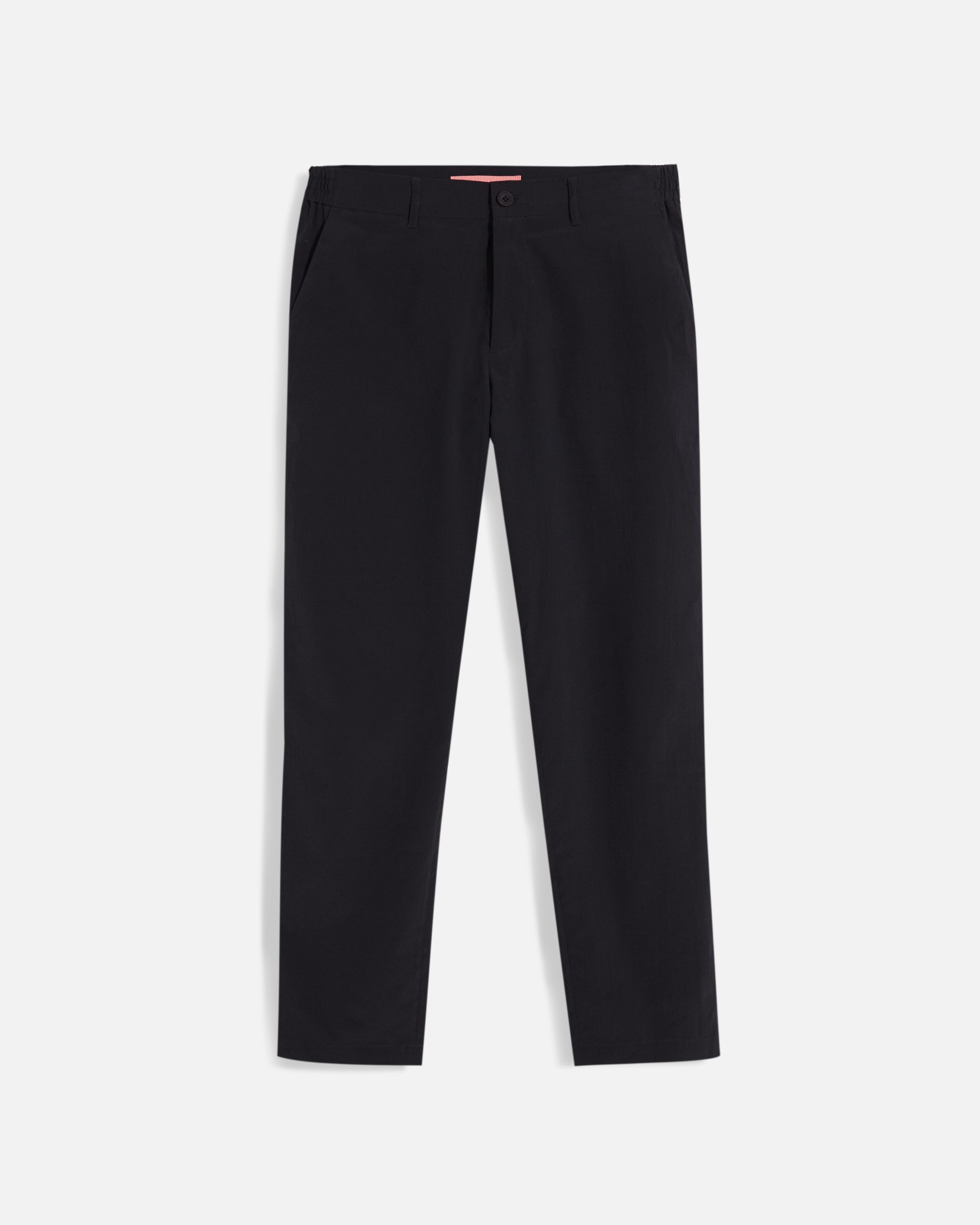 Pantalón 365 confeccionado en tejido técnico japonés, de tacto suave, transpirable y antiarrugas. La prenda incluye dos bolsillos laterales y dos bolsillos traseros con botón a presión.