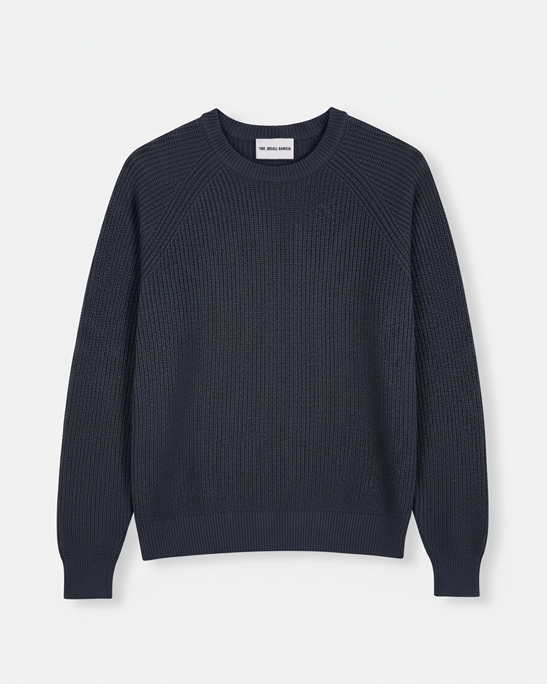 Jersey canalé beige confeccionado en 100% lana merino extrafina. Manga ranglán, cuello ancho de canalé y ribb en puños y bajo.