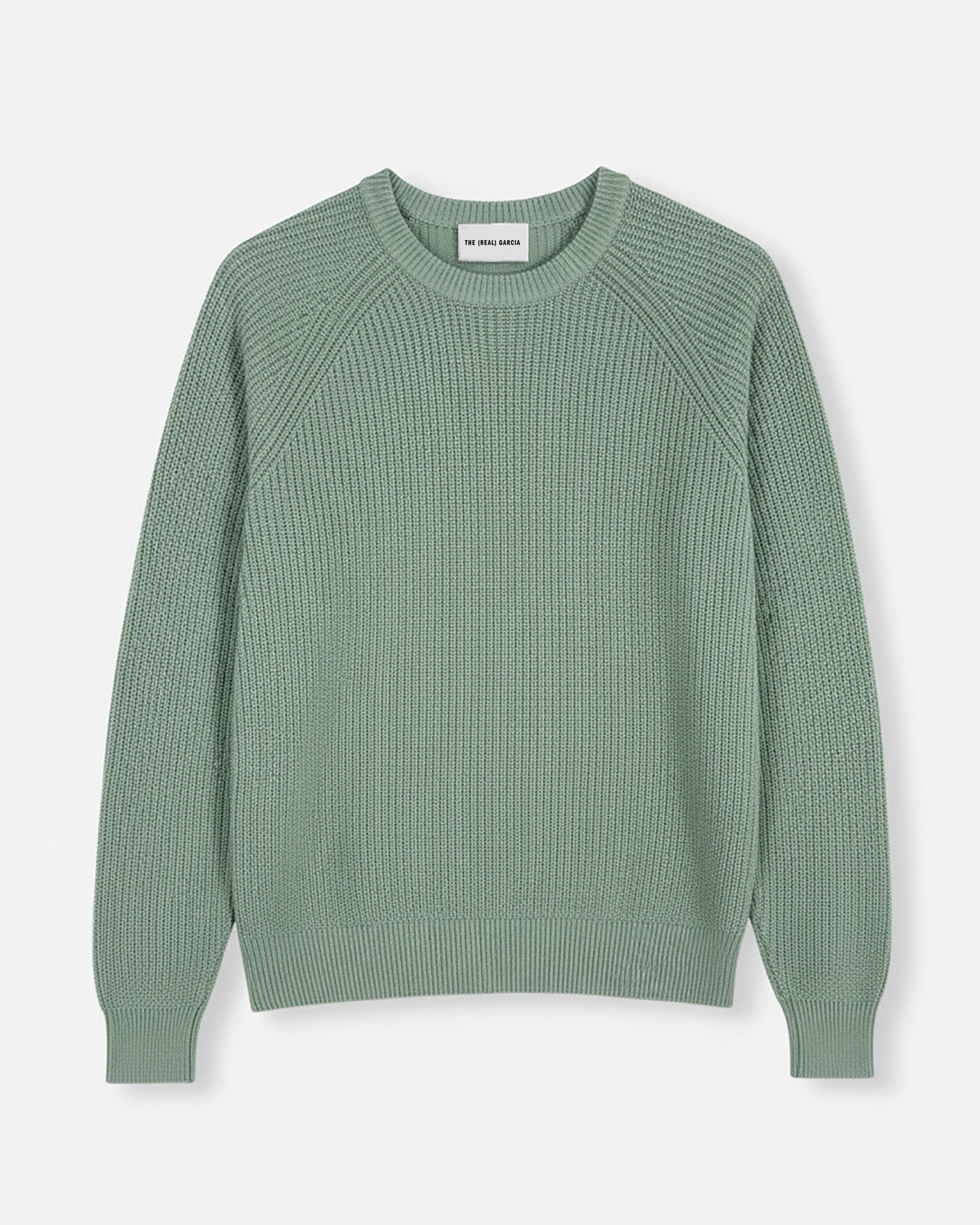 Jersey canalé navy confeccionado en 100% lana merino extrafina. Manga ranglán, cuello ancho de canalé y ribb en puños y bajo.
