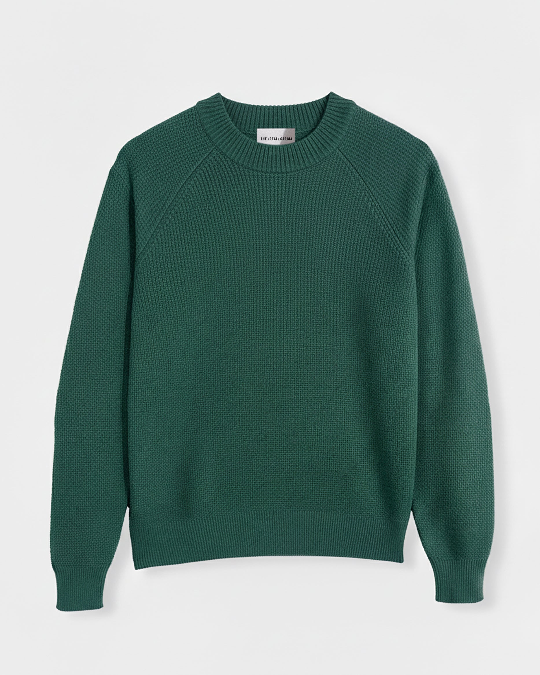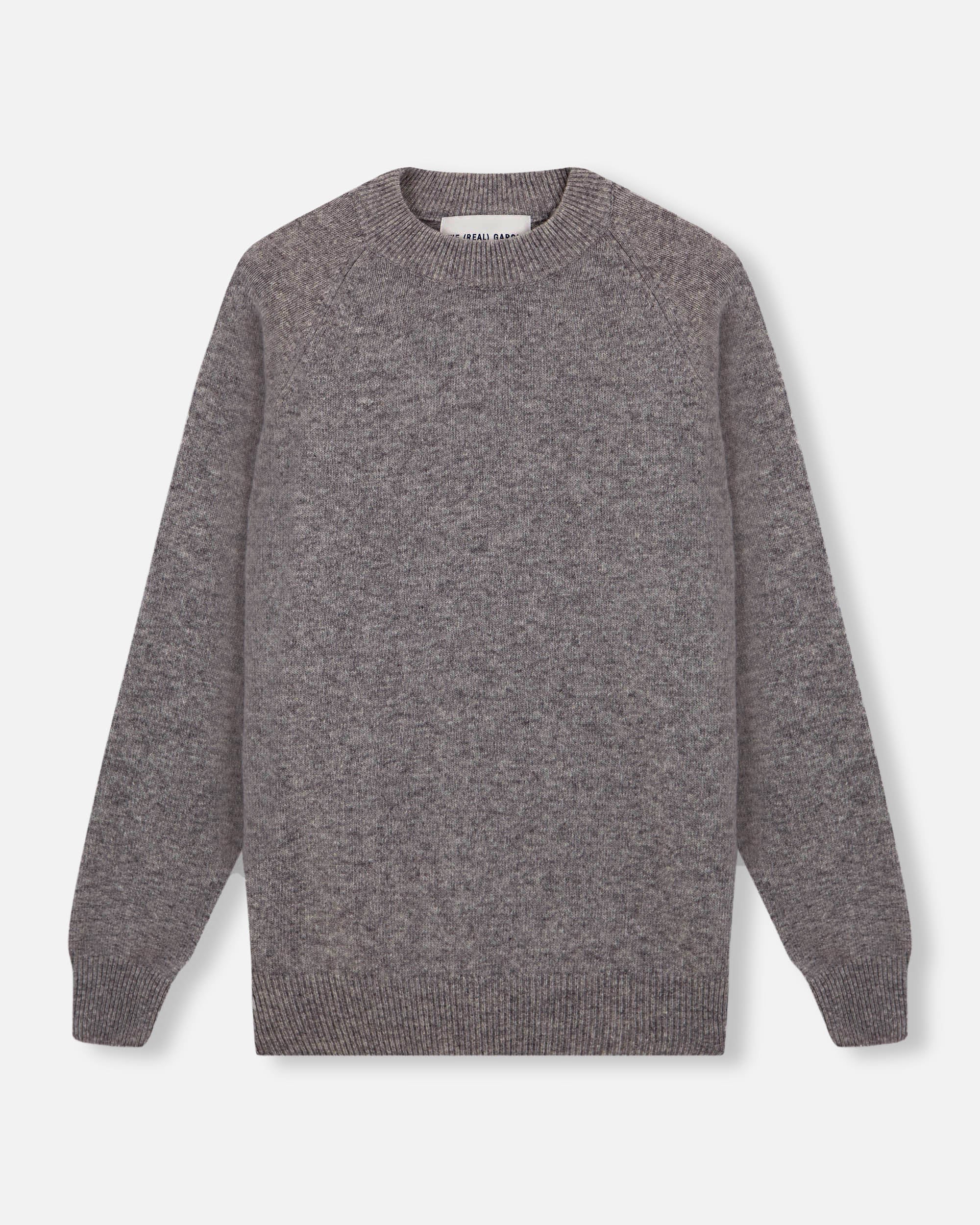 Jersey navy de lana y cashmere, textura suave y corte relajado. Cuello redondo y manga larga.